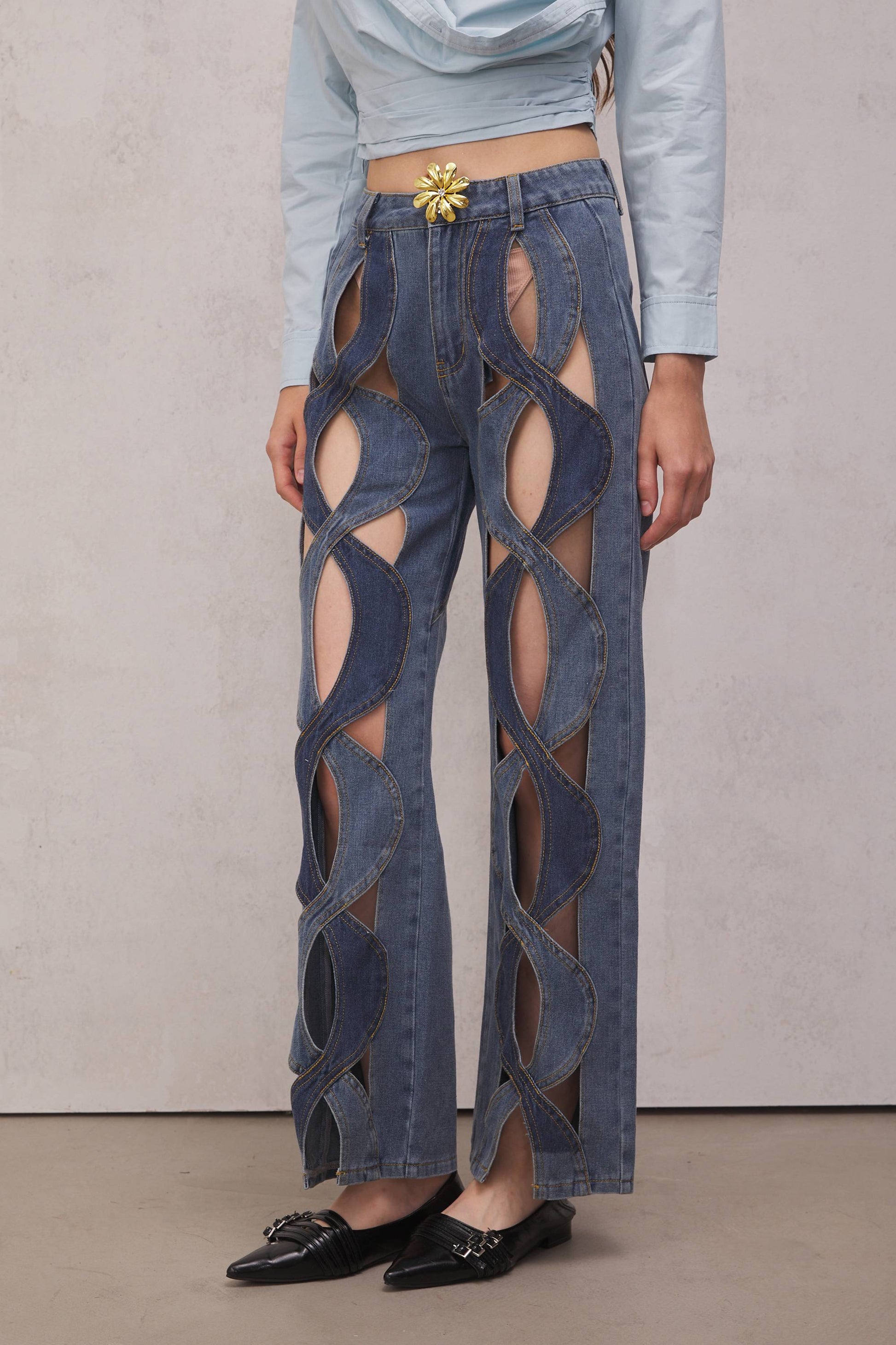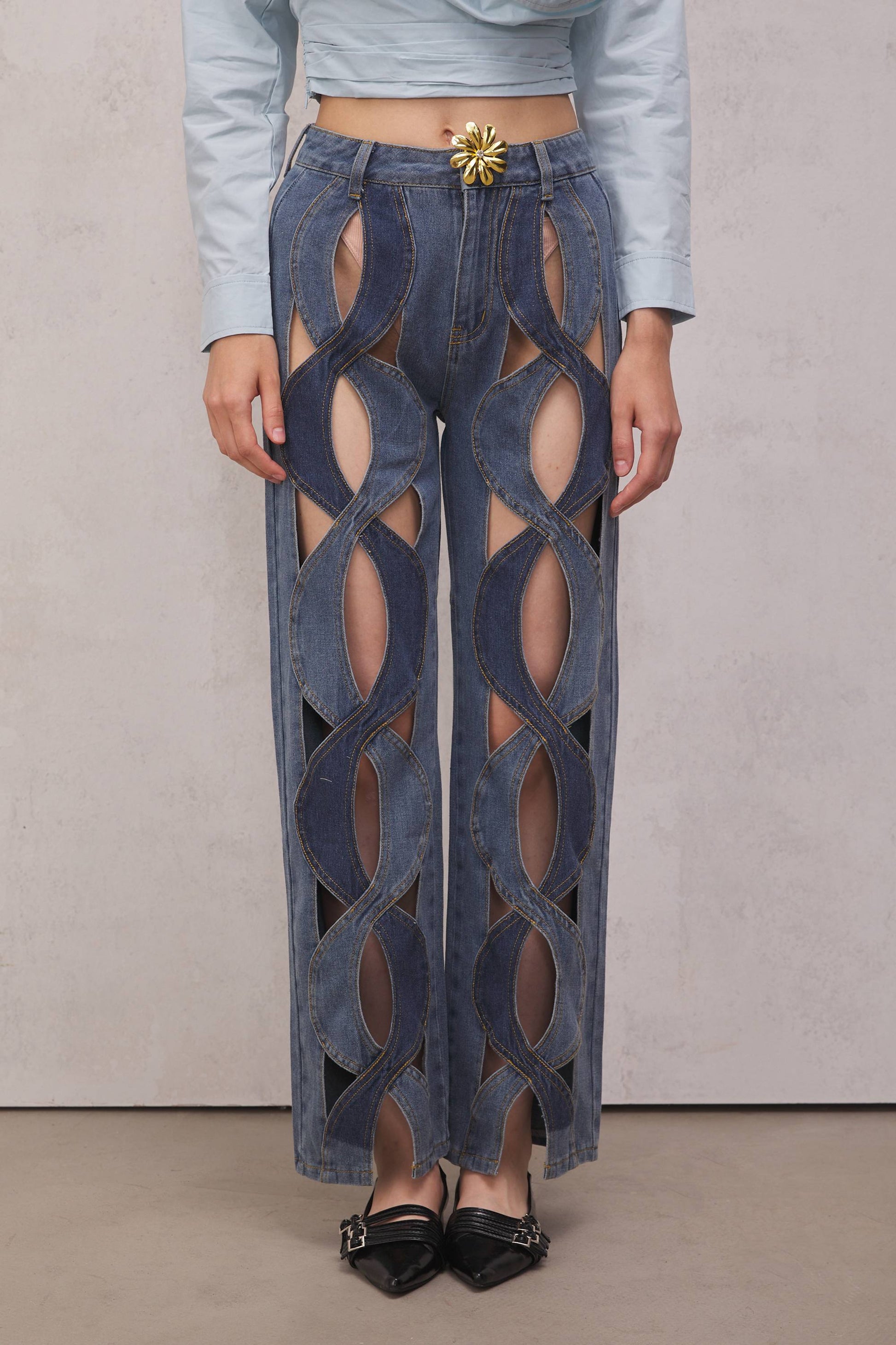The Abigail Jeans bring a new dimension to denim. The cutout pattern and premium fabric make this a real eye-catcher. Perfect for adding a unique twist to your casual look.