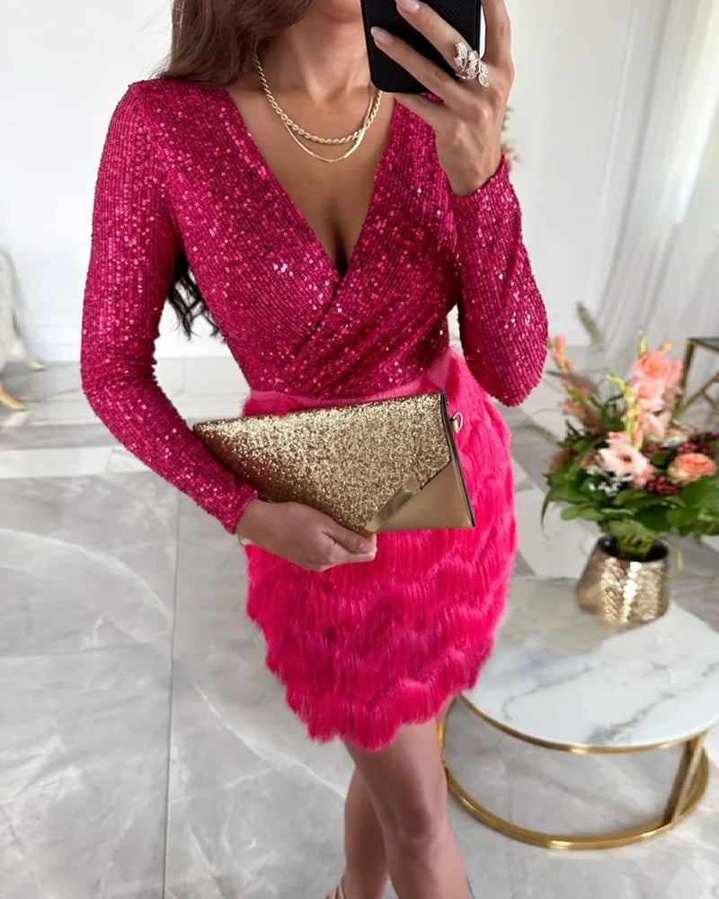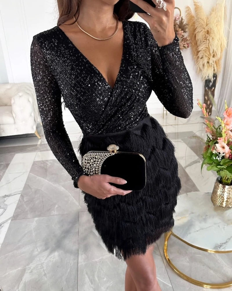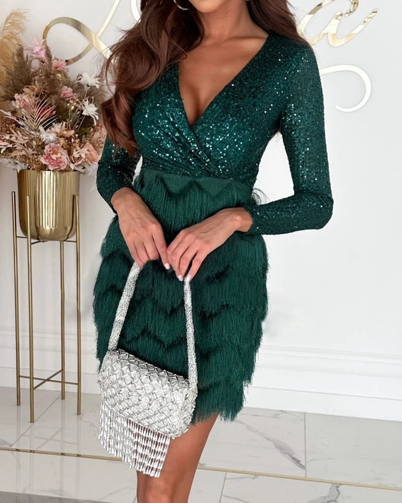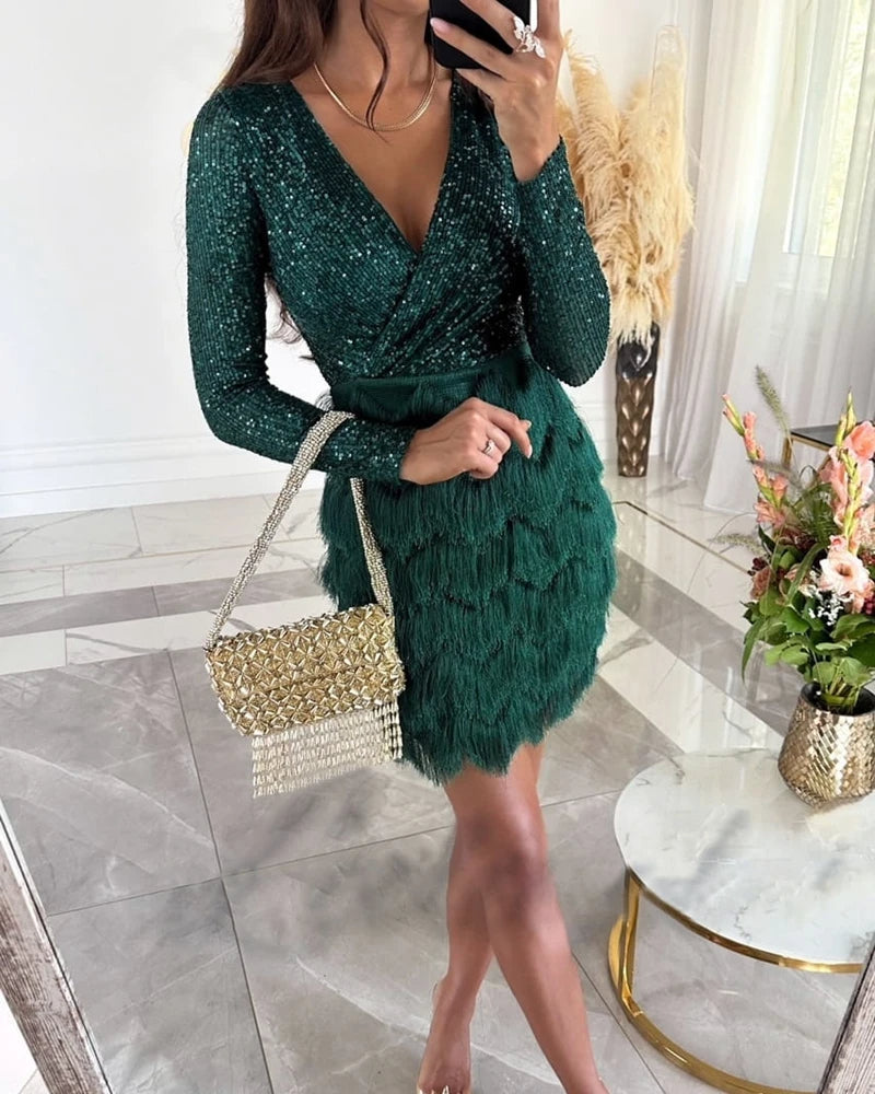 Shine like never before in the Alessia™ dress, a masterpiece of sparkling sequins and elegant fringe. This dress is perfect for special occasions where style and refinement meet. With its luxurious look and timeless charm, this dress is your perfect companion for unforgettable evenings.