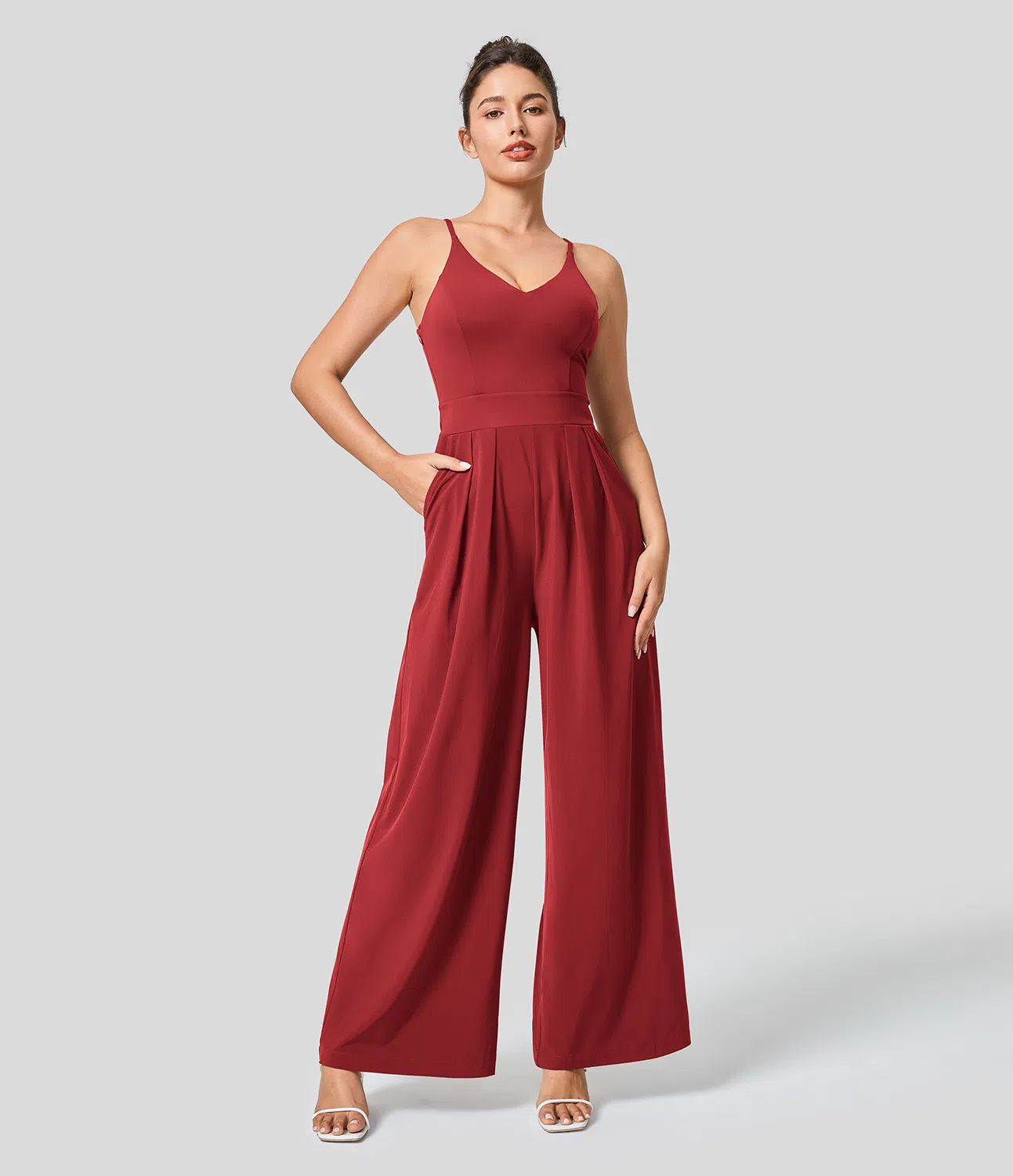 • Halter Neck Jumpsuits: This style has a band around the neck that provides support and draws attention to your décolletage.