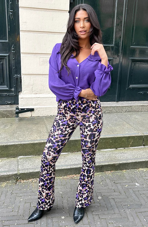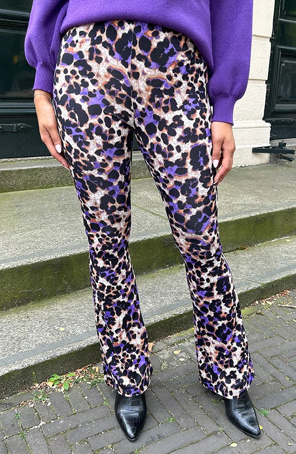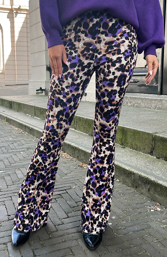 Bronte | Purple Leopard Print Flared Trousers for Women