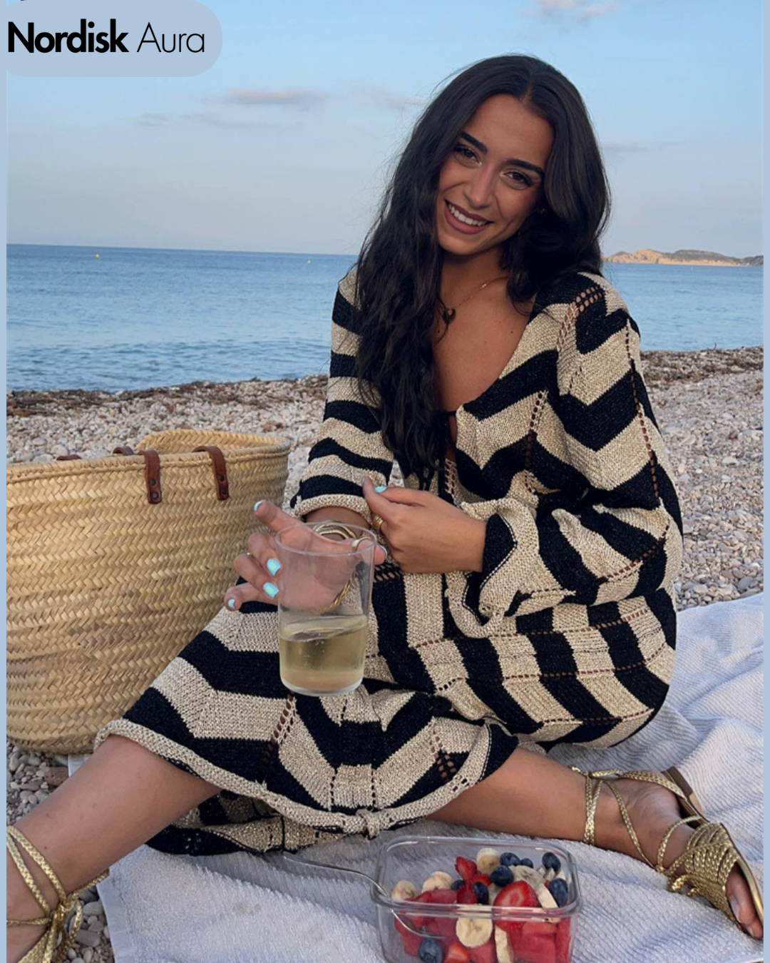 Imagine this: You're walking along the beach, a breeze blowing through your hair, and you feel beautiful in your Claudia dress. It flutters in the wind, just like waves on the sea.