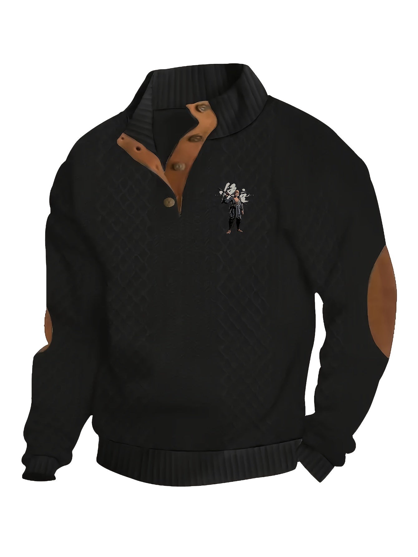 The Dax™ Cozy Fleece-Lined Knit Sweater is the perfect choice for fall and winter . This casual sweater with a stand-up collar and long sleeves not only keeps you warm but also adds a playful touch with the unique Monkey King design . The fleece lining provides extra warmth and comfort, making this sweater perfect for cold days.