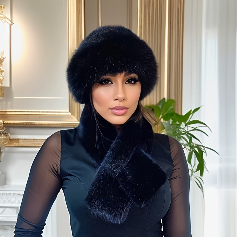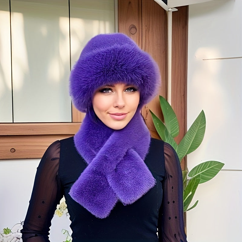 Stay cozy and stylish with this fur winter set, combining a soft faux fur hat and a matching knitted scarf. This set offers ultimate protection from the cold and adds a luxurious touch to any winter outfit.