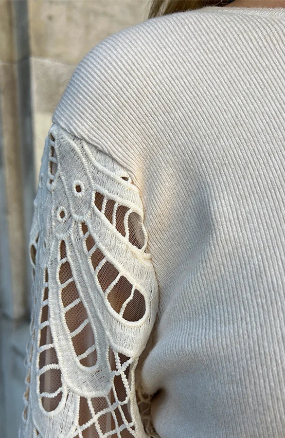 Florence | Classic Soft Sweater with Lace Sleeves - Beige