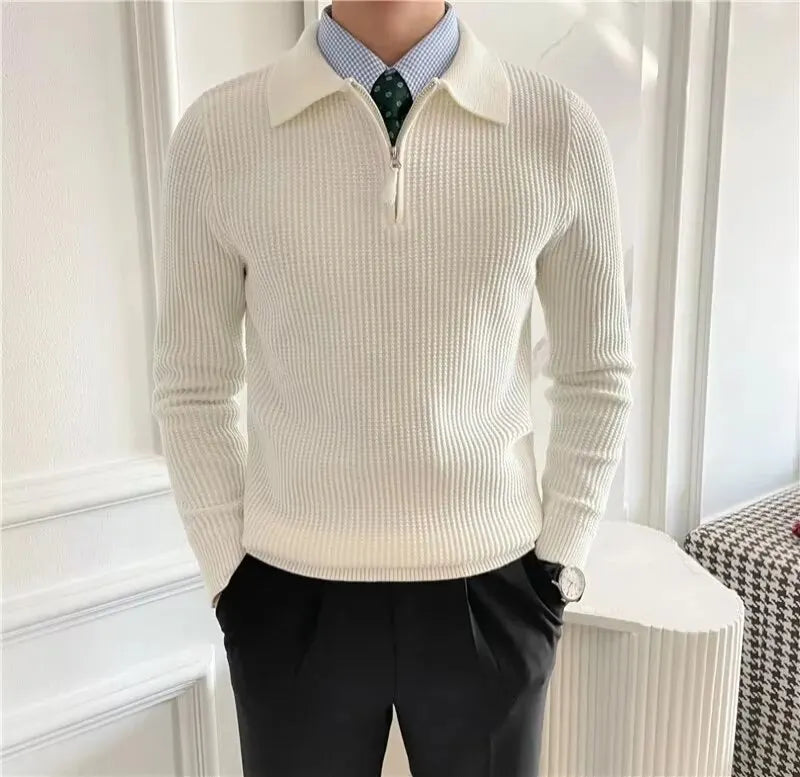 Crafted from the softest merino wool, this timeless sweater offers ultimate comfort and warmth. The subtle zipper adds a modern touch to the classic design. Perfect for both business and casual occasions.