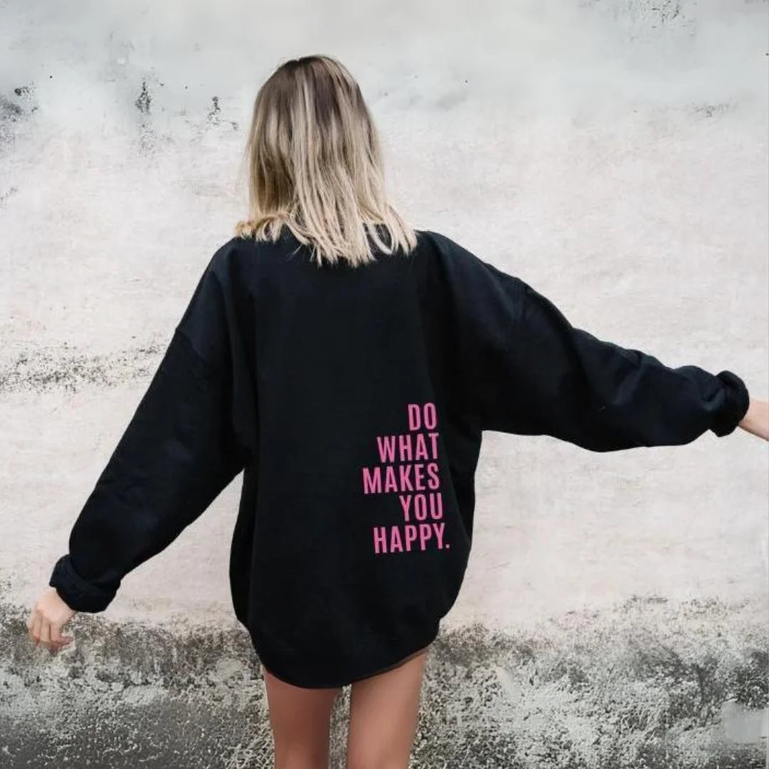 Give your wardrobe a boost with the Helen™ Hoodie, a perfect balance of style, comfort, and a powerful message. This oversized hoodie, featuring the slogan " DO WHAT MAKES YOU HAPPY ," is ideal for relaxed days, sporty moments, or casual outings. Crafted from a premium cotton blend for ultimate softness and long-lasting warmth.