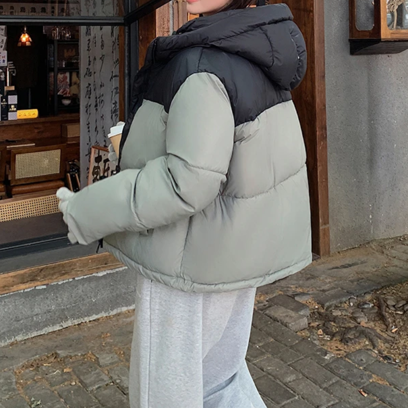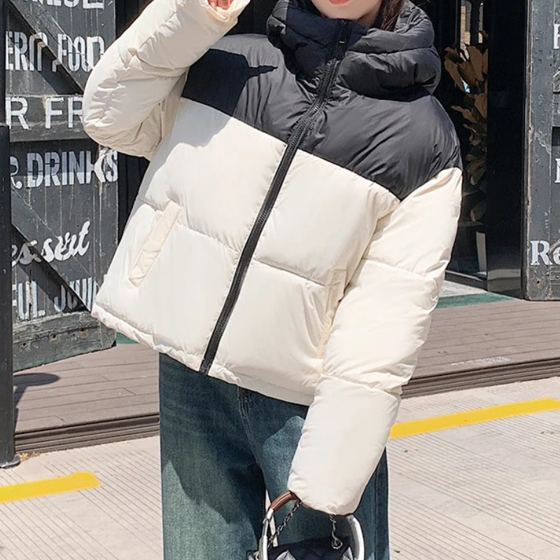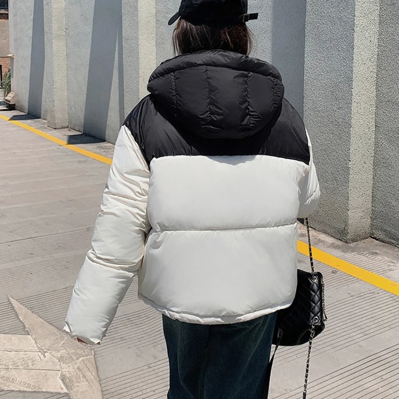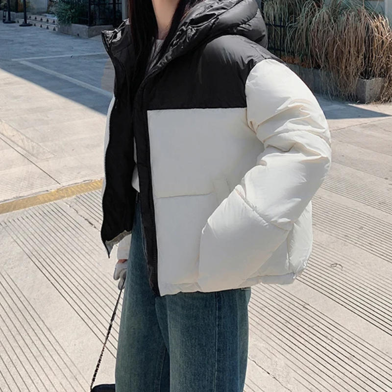 Stay stylishly warm with the Sherlyn , a trendy women's down jacket that perfectly combines comfort and fashion. Designed for the cold autumn and winter months, this jacket features a unique two-tone design that adds a playful touch to any outfit. The practical hood offers extra protection from the wind and cold, while the lightweight down filling provides optimal insulation without compromising freedom of movement.