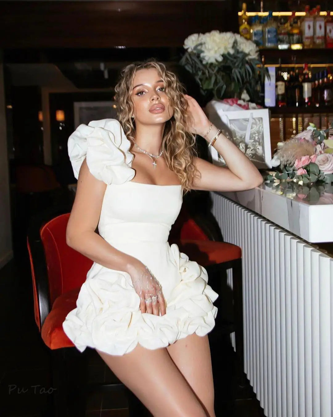 This elegant mini dress is perfect for formal occasions like balls, cocktail parties, and club nights. Available in a variety of colors, including blue, green, and white, it features an asymmetric, one-shoulder design with ruffles that add a unique and feminine touch. Crafted from high-quality fabric that's both comfortable and figure-flattering, you'll feel confident and beautiful all evening long.