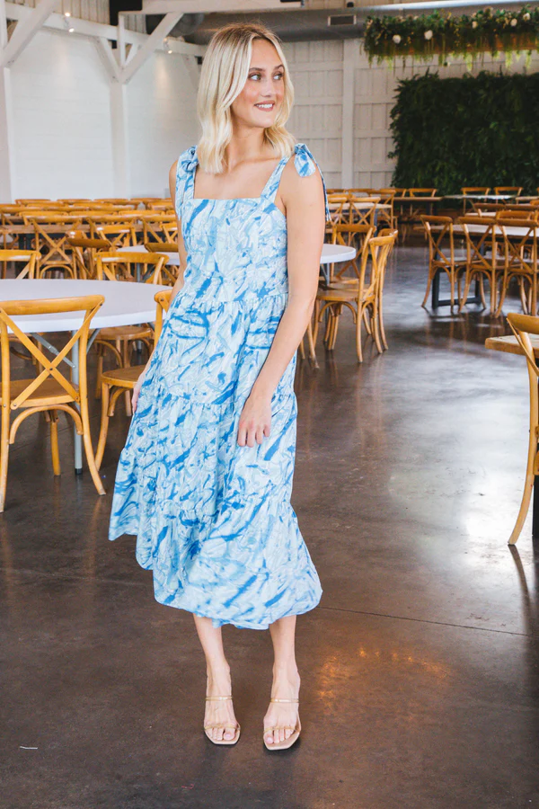 The Victoria midi dress is a stunning statement in a captivating light blue. It uniquely combines elegance and comfort, making it perfect for any occasion.
